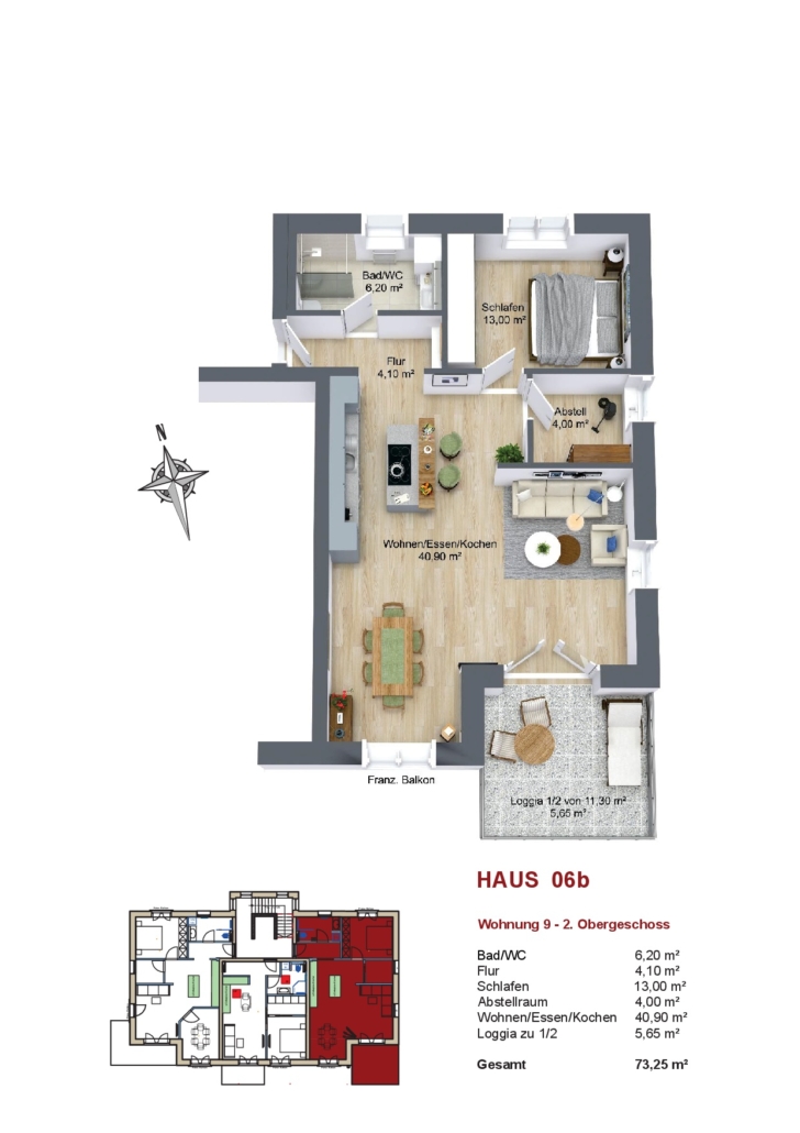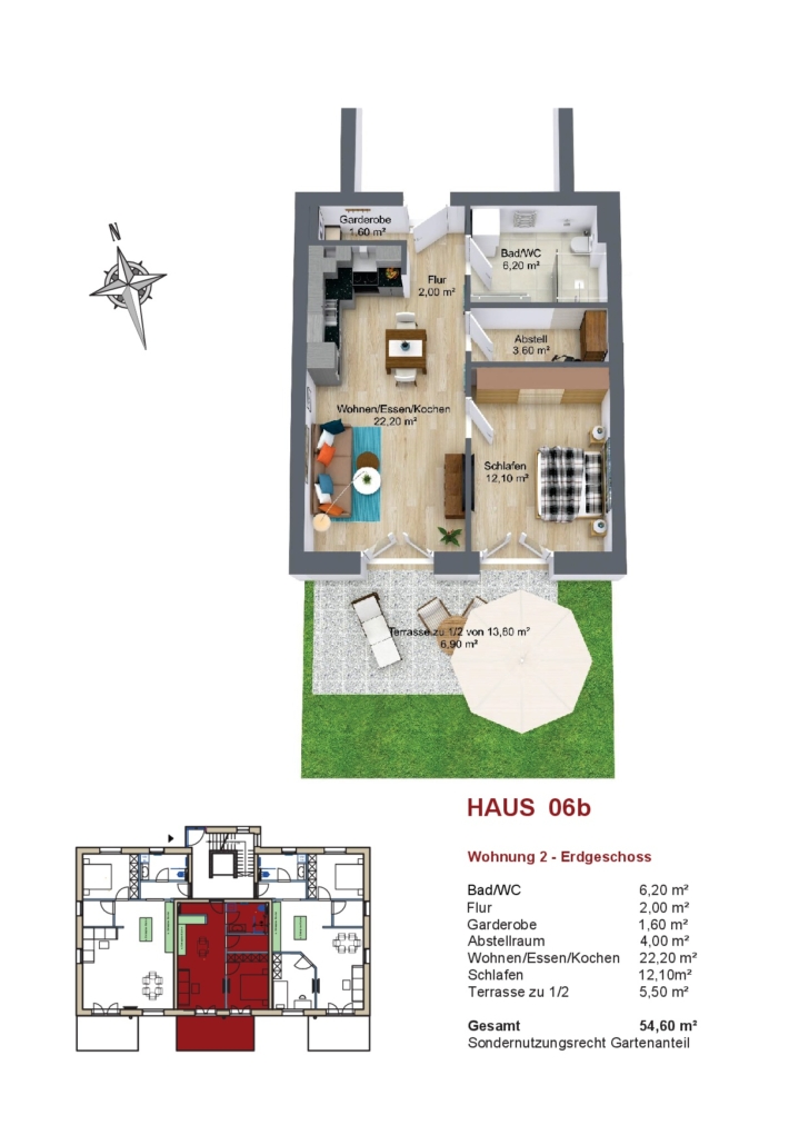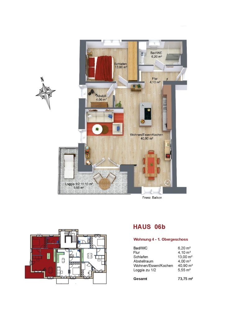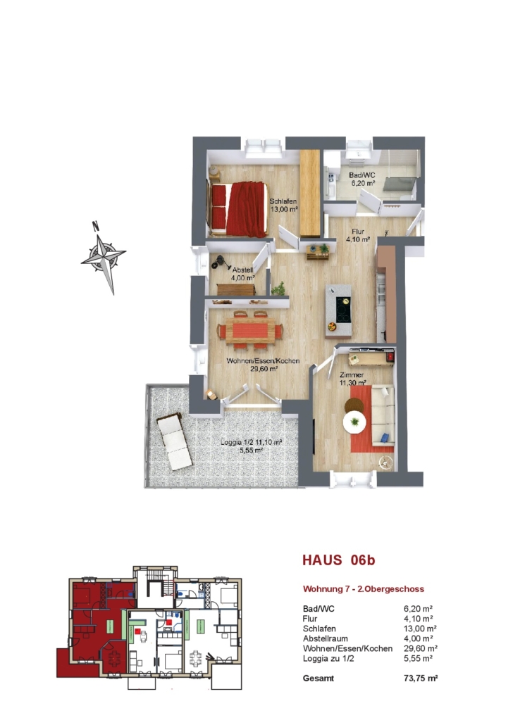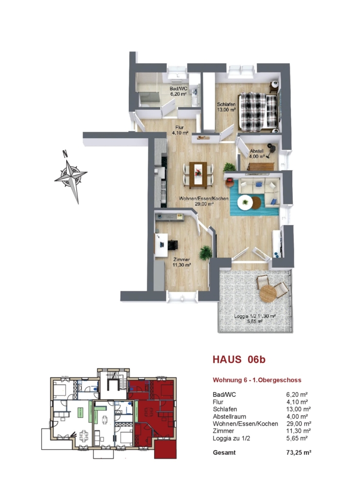 Sie finden hier die Pläne der Wohneinheiten. 3D-Draufsicht und Raum-Maße, sowie die Lage der Wohnung im Haus (Volltonfläche) und Geschoss. Zum Vergrößern der Ansicht klicken Sie bitte auf die Bilder in der Galerie.